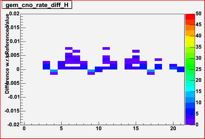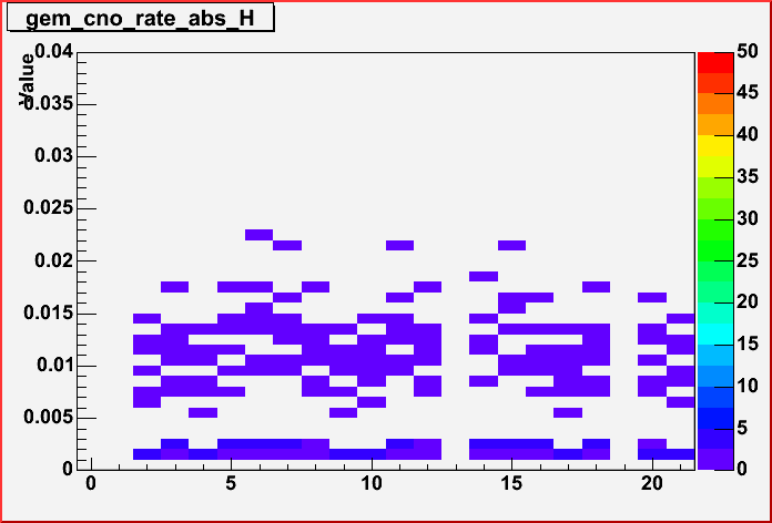 GEM CNO rate: Fraction of events with a CNO in GEM. By GARC. Range: 0% - 3.0% (for horizontal muons) |
