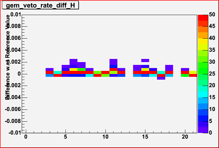 GEM Veto rate: Fraction of events with a veto in GEM. By tile. Range: 0.5% - 6.0% (for horizontal muons) |