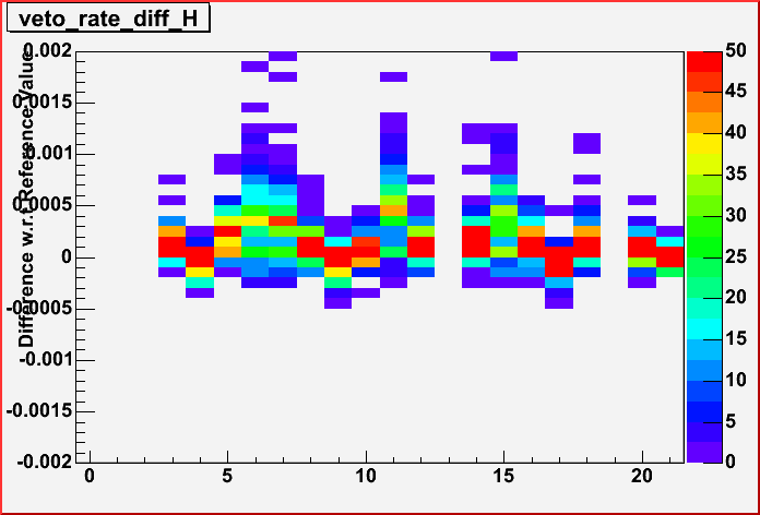 PMT Veto rate: Fraction of events with a veto. By PMT. Range: 0.5% - 3.5% (for horizontal muons) |