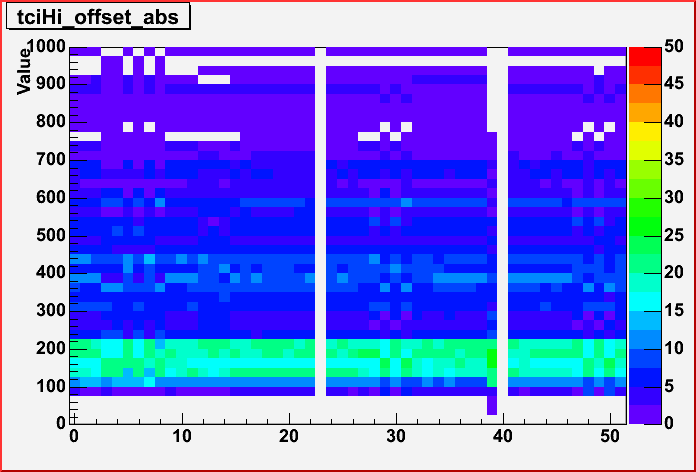 Intercept of pha v. tci_dac curve. This plots is for reg range readout For tci_dac 0-23 Range: 0 - 2000 |