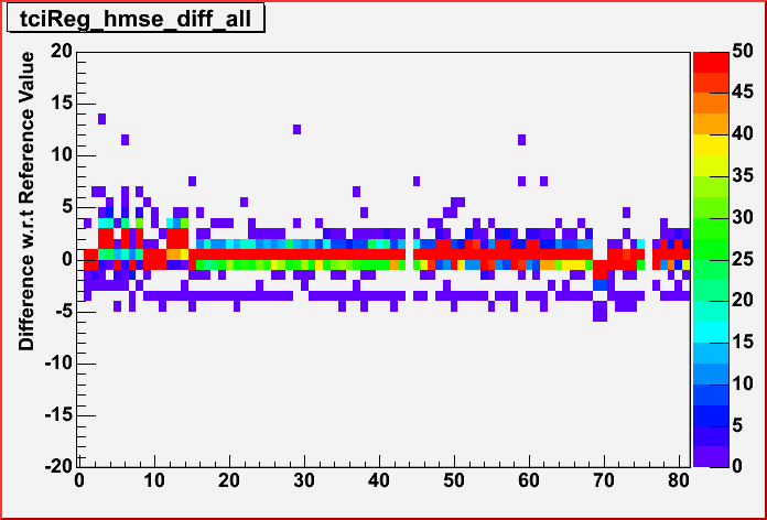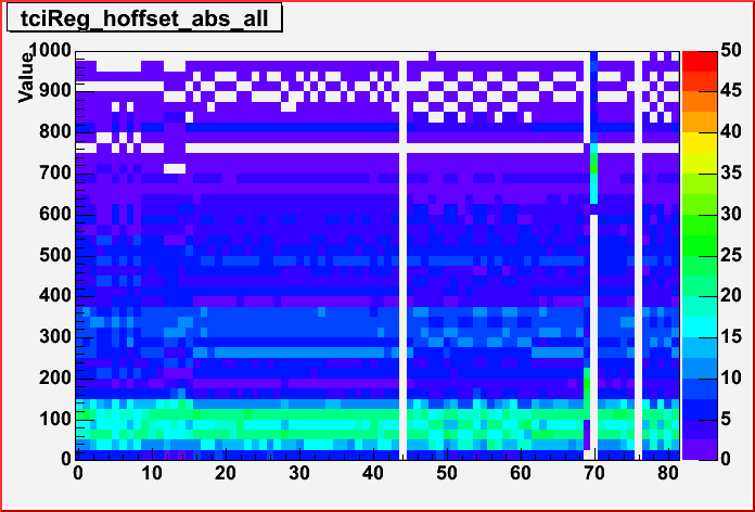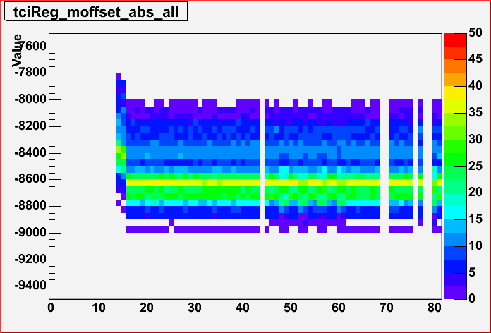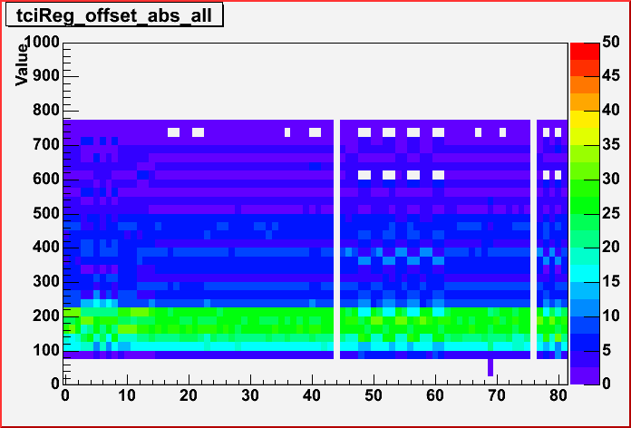 Intercept of pha v. tci_dac curve. This plots is for reg range readout For tci_dac x-63 Range: 0 - 2000 |