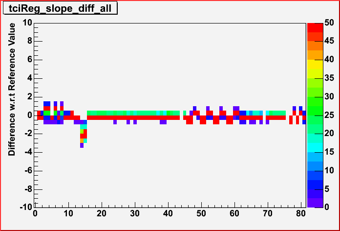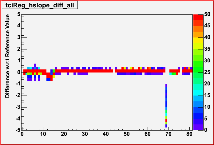 Slope of pha v. tci_dac curve. This plots is for reg range readout For tci_dac x-63 Range: -150 - -110 |