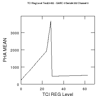 Intercept of pha v. tci_dac curve. This plots is for reg range readout For tci_dac 0-23 Range: 0 - 2000 |
