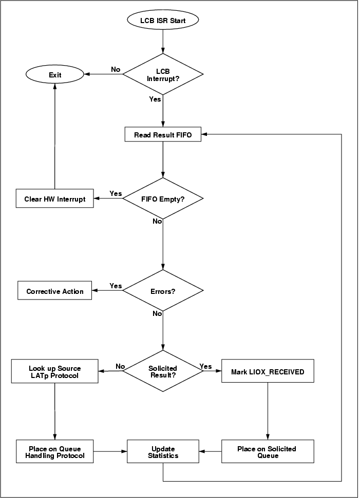 All LCB result descriptors for both unsolicited data and command/response data are stored in the same LCB Result Descriptor FIFO. When the FIFO goes from empty to non-empty the LCB raises an interrupt signal.