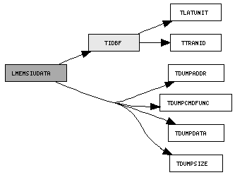 LMEMSIUDATA (pkt) | TIDBF idents (bf) | | TLATUNIT latUnit (0-3) | | TTRANID tranID (4-15) | TDUMPADDR address (fld) | TDUMPSIZE wordCount (fld) | TDUMPCMDFUNC cmdFuncCode (fld) | TDUMPDATA data[0-89] (fld)