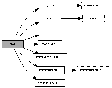 Stats (pkt) | PAD16 pad16 (fld) | ITC_NodeId nodeId (fld) | STATSID timerID (fld) | STATSMASK statMask (fld) | STATSOPTIONMASK optionMask (fld) | STATSTIMELEN timeLen (fld) | STATSTIMESAMP timeSample (fld)
