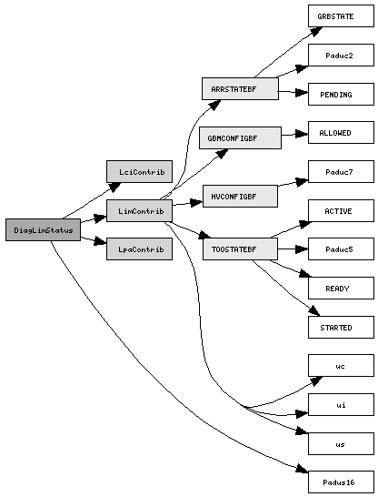DiagLimStatus (pkt) | Padus16 rsv (fld) | LimContrib lim (str) | | ui status (fld) | | us action (fld) | | uc opMode (fld) ... LpaState (fld) | | ui tooSecsLeft (fld) ... gbmDisableSecsLeft (fld) | | TOOSTATEBF too (bf) | | | Paduc5 pad (0-4) | | | STARTED started (5) | | | ACTIVE active (6) | | | READY ready (7) | | ARRSTATEBF arr (bf) | | | Paduc2 pad (0-1) | | | PENDING rep_req_pending (2) | | | GRBSTATE grb_state (3-5) | | | ACTIVE active (6) | | | READY ready (7) | | GBMCONFIGBF gbm (bf) | | | Paduc5 pad (0-4) | | | ALLOWED pri_int_allowed (5) ... rep_req_allowed (7) | | HVCONFIGBF hv (bf) | | | Paduc7 pad (0-6) | | | ALLOWED hv_allowed (7) | LpaContrib lpa (str) | | ui runId (fld) ... latcIgnoreFid (fld) | | uc dbId (fld) ... mode (fld) | | us spare (fld) | LciContrib lci (str) | | ui runId (fld) ... spare (fld)