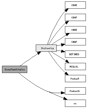DiagTaskCfgSiu (pkt) | Padus16 rsv (fld) ... spare0 (fld) | uc ctdb (fld) ... ssr (fld) | ItcConfig task[0-31] (bf) | | DEFINED defined (0) | | Padus5 spare (1-5) | | MSGLVL msg_level (6-7) | | CNAE cn_ae (8-9) | | CNAF cn_af (10-11) | | CBAE cb_ae (12-13) | | CBAF cb_af (14-15) | Padus16 pad[0-15] (fld)