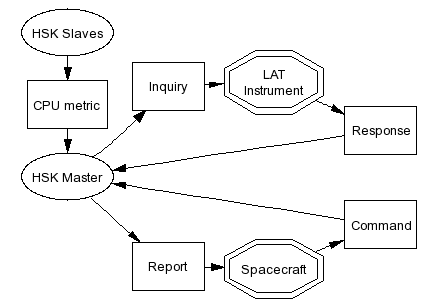 DescriptionThese tasks monitor instrument housekeeping information, including voltages, currents, and temperatures. They also package the information for downloading. The master task is responsible for interrogating the instrument housekeeping systems (e.g., counters, currents, voltages). It assembles housekeeping packets to go into 1553 data stream. The slave tasks provide packets of CPU metrics for the master to put into the housekeeping stream.