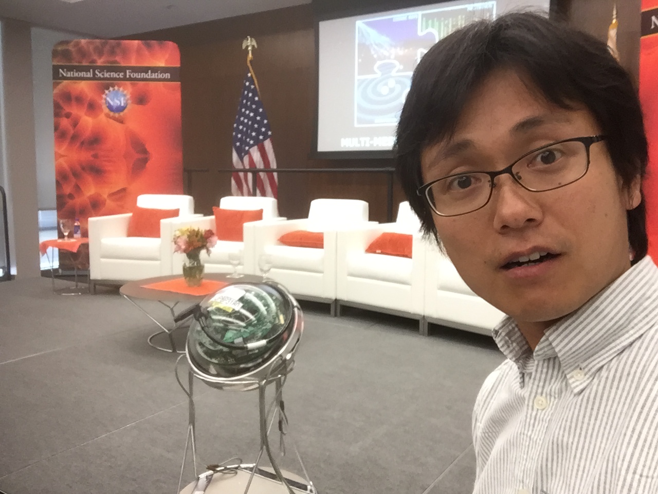 IceCube detector with me on the NSF press conference